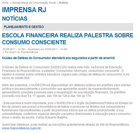 O Núcleo de Defesa do Consumidor (NUDECON) realiza este mês, na Escola de Educação Financeira do Rioprevidência, a palestra “Consumidor informado, consumidor consciente”. O objetivo é orientar sobre contratos bancários, regidos pelo código de defesa do consumidor, e os riscos do crédito fácil.