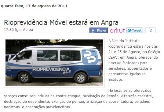 A Van do Instituto Rioprevidência está nesta quarta e quinta (24 e 25/08) estacionada no Colégio CEAV, localizado no Centro de Angra, oferecendo diversas facilidades para servidores, aposentados e pensionistas ligados ao instituto de toda a região.