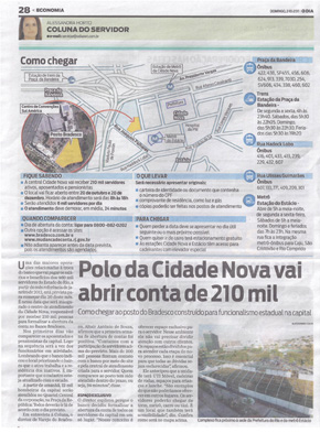 Uma das maiores operações relacionadas à troca do banco que vai pagar os salários e benefícios dos 460 mil servidores do Estado do Rio, a partir do mês referência de janeiro de 2012, está prevista para começar dia 20 deste mês. É nessa data que será inaugurado o centro de atendimento da Cidade Nova, responsável por receber 210 mil pessoas para formalizar a abertura da conta no Banco Bradesco