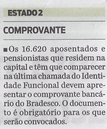 Os 16.620 aposentados e pensionistas que residem na capital e têm que comparecer na última chamada do Identidade Funcional devem apresentar o comprovante bancário do Bradesco. O documento é obrigatório para os que serão convocados.