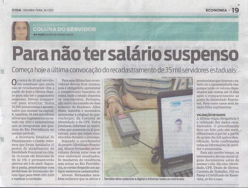 Segundo o coordenador do projeto Identidade Funcional, Alexon Fernandes, os servidores devem estar com os seus endereços atualizados. Se mudarem de residência sem avisar ao Rio Previdência, as cartas chegarão aos antigos endereços cadastrados.