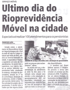 Iniciado ontem, o atendimento do Rioprevidência Móvel em Itaguaí prossegue até o final da tarde de hoje no Colégio Estadual José Maria de Brito, próximo ao Terminal Rodoviário da cidade. A expectativa é finalizar o expediente com cerca de 100 atendimentos. De acordo com a supervisora, Lucy Laporte, dentre os serviços oferecidos aos pensionistas estão, atualização de endereço, simulação de aposentadoria, emissão da 2ª via do contracheque, declaração de rendimentos, revisão e habilitação à pensão, dentre outros. “O foco principal do projeto são os pensionistas. O servidor ativo e inativo que tiver alguma dúvida pode nos procurar para esclarecimentos”, afirma.