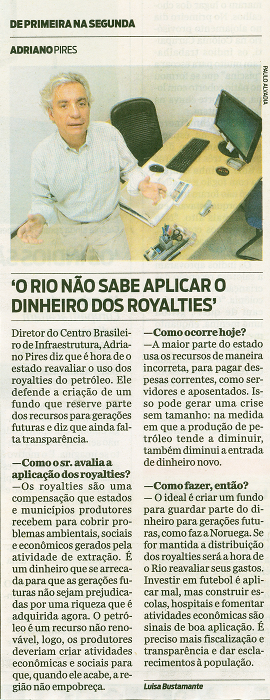 'O Rio não sabe aplicar o dinheiro dos Royalties'