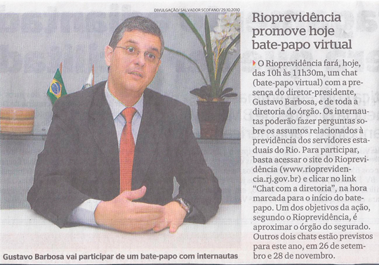 Rioprevidência promove hoje bate-papo virtual.