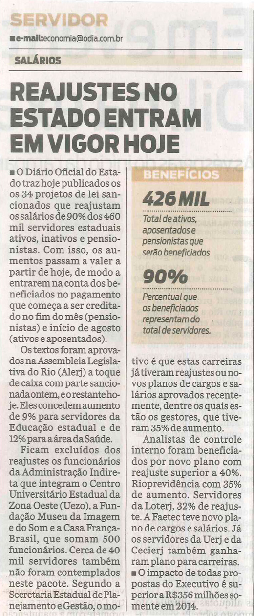 Reajustes no Estado entram em vigor hoje