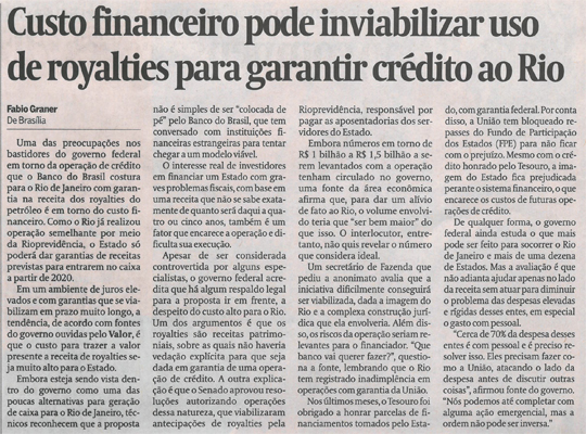 Custo financeiro pode inviabilizar uso de Royalties para garantir crédito ao Rio