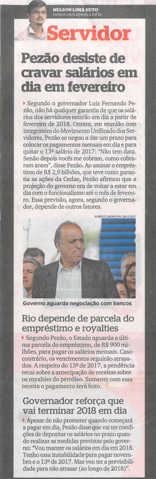 Pezão desiste de cravar salários em dia de fevereiro