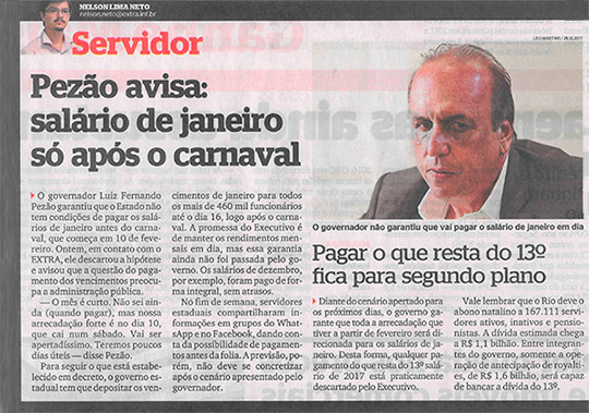 Pezão avisa: salário de janeiro só após o carnaval