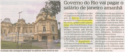 Governo do Rio vai pagar o salário de janeiro amanhã